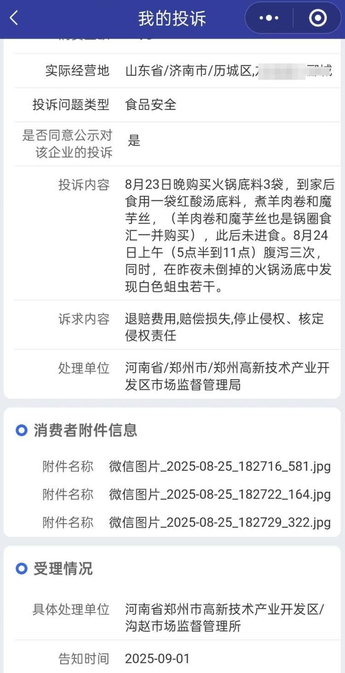 消费者称吃锅圈食汇暖锅底料次日发觉蛆虫 市监