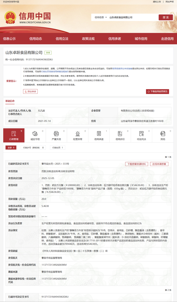 12月5日,曹县市场监视办理局发布行政惩罚决定书,对“苍野农夫”牛排的出产商做出惩罚。这是继本年3月15日新黄河辛选集团从播辛巴、蛋蛋带货“假原切牛排”事务后,给出的首个本色性处置成果。决定书显示,因“出产运营无标签的预包拆食物、食物添加剂或者标签、仿单不合适”,涉事企业被罚款20万元,违法所得5。46万元,合计罚没款子约25。46万元。这一迟到近一年的惩罚成果,并未平息质疑。做为该事务的焦点举报人,打假博从王先生(网名“蛙哥出击”)向记者出示了相关,认为该案正在违法现实认定、涉案金额计较以及“以罚代刑”等方面仍存庞大争议。按照曹县市场监管局查明的现实,当事人受委托出产的“静腌菲力牛排”,其标签标示的配料仅为“牛肉、饮用水、食用盐、白砂糖、酿制酱油(含焦糖色)、喷鼻辛料、碳酸氢钠”,死力营制“配料表清洁”的抽象。现实投猜中却包含了大量未标注的化学添加剂。法律人员查实,该产物现实添加了复配水分连结剂(含三聚磷酸钠、六偏磷酸钠、焦磷酸钠、焦磷酸二氢二钠)以及复配酸度调理剂(含D-异抗坏血酸钠、碳酸钠、柠檬酸钠等)。这些并未正在曲播间和包拆上呈现的磷酸盐类保水剂,恰是此前消费者赞扬牛排“口感像海绵”“吃不出牛肉味”的次要缘由。对此,监管部分根据食物平安法第一百二十五条第一款第(二)项(即标签瑕疵条目),认定了违法行为。惩罚决定书显示,法律部分认定的违法货值金额为78。94万元,违法所得仅为5。46万元。据此,市场监管局做出了上述罚款决定。这组数据取曲播间展示的发卖规模存正在庞大落差。仅正在辛选从播蛋蛋的一场曲播中,“苍野农夫”牛排的大小两个链接销量就达到3万单,对应发卖额约为600万元。而正在长达半年的发卖期内,辛巴及旗下从播多次带货该产物,累计发卖额或达万万元级别。记者获得的一组后台截图进一步佐证了这一悬殊差距。王先生对辛选曲播间联系关系的三个次要链接(商品编号A576、A586及K634)进行了一道“算术题”:仅这几个链接显示的已售数量就别离达到了3。6万件、这意味着,仅统计这部门可见数据,该款涉事牛排的累计销量就已跨越6。5万单。按照约199。8元的曲播间单价计较,现实发卖总额高达1300万元。这一数字,是行政惩罚决定书中认定“违法货值”78。9万元的16倍之多。“案值认定不到80万,可能仅计较了现场查获的单批次或库存货值。”王先生暗示,若是按照食物平安法第124条关于出产运营不合适食物平安尺度食物的,货值金额一万元以上的,该当处货值金额十倍以上二十倍以下罚款。正在他看来,对一个发卖额数万万的项目,仅按标签违规处置,且未将曲播间复杂的现实销量纳入案值,最终25万元的惩罚偏轻。据王先生透露,自2024年11月起,他先后前去杭州、山东等地举报。查询拜访初期,曹县本地监管人员曾试图注释称这些添加剂是“喷鼻辛料带入”,并以此为由赞扬下架了相关视频。曲到2025年12月,正在多次向相关部分反映后,曹县市场监管局才最结束“喷鼻辛料”的说法,认定了配料表制假。回首整个事务,“苍野农夫”取“美享时辰”两款牛排之所以能绕过品控进入头部曲播间,取辛选集团特殊的供应链模式相关。此前查询拜访显示,辛选集团不只是产物的发卖方,涉事牛排的供应链公司取辛选存正在股权交集,构成了“自产自销”的闭环。正在这种模式下,曲播间以40多元/斤的价钱发卖“原切”的牛肉,售价迫近以至低于同期原材料成本,其利润空间只能通过违规添加保水剂、降低肉质成本来挤压。目前,虽然出产商已收到罚单,但做为发卖从体和虚假宣传次要义务方辛选集团,尚未遭到明白的行政惩罚。曹县市监局正在答复中暗示,该案“不合适移送机关的前提”。截至发稿,辛选集团尚未就代工场被罚一事做出回应。王先生暗示,将结合消费者对涉事方提起集体诉讼。